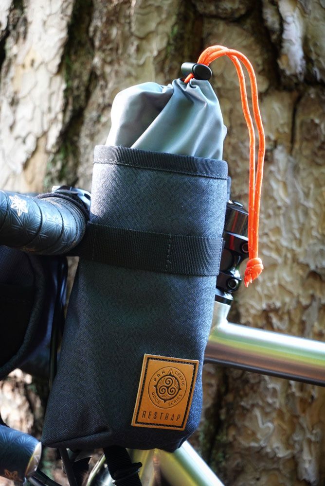 The Restrap stem bag gives you even more storage. Ideally designed for food, or even a water bottle, our stem bag will keep your supplies safe and dry. Easy draw string closure means you can access its contents on the go, whilst its adjustable Velcro and fork support fits any bike.